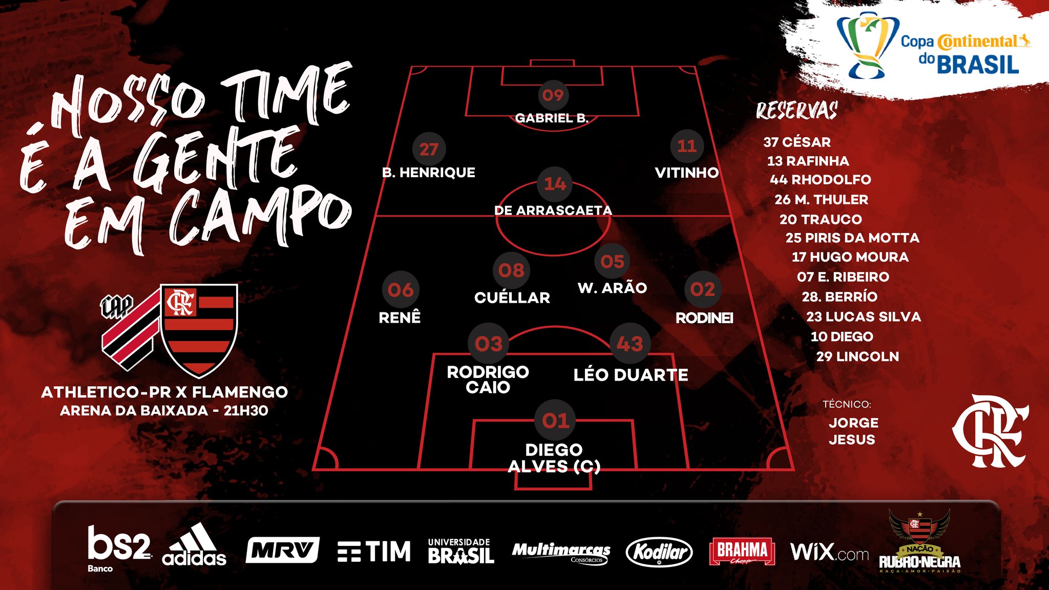 Muito trabalho pela frente. Esta é a pior defesa que JJ teve nos últimos 12 anos, a equipa por outro lado tentou pressionar alto mas notou-se que não está habituada a fazê-lo e abriu sempre ‘grandes buracos’ no meio campo. No capítulo ofensivo Gabigol marcou um golaço e ainda desperdiçou mais 2-3, mas os ataques foram quase todos através do passe longo. Valeu o resultado, ainda por cima na primeira parte o Athletico teve lances suficientes para chegar aos 4 ou 5 golos (Diego Alves) e mesmo no 2.º tempo foi sempre a equipa com mais iniciativa (o Fla terminou a defender num bloco muito baixo). A nível individual os defesas Rodinei e Léo Duarte tiveram exibições confrangedoras. Rodrigo Caio foi o menos mau da defesa, mesmo assim cometeu muitos erros de posicionamento e de abordagem (muitas bolas cortadas de maneira deficiente). Arão no meio campo demonstrou a sua falta de técnica, Vitinho nem se viu, melhor esteve Gabigol que marcou um belo golo, já Bruno Henrique foi o mais esforçado mas acabou por ser prejudicado pelo relvado (além de ser sintético estava em más condições).