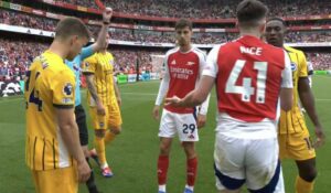 O Arsenal perdeu os primeiros pontos na Premier League ao tropeçar na receção ao Brighton (1-1). Os Gunners adiantaram-se num belo chapéu de Havertz aos 38′, mas ficaram reduzidos a 10 logo após o intervalo devido à expulsão de Declan Rice (viu o 2.º amarelo por ter retardado uma reposição de bola) e com isso o jogo mudou por completo, tendo os Seagulls aproveitado para empatar através de João Pedro.