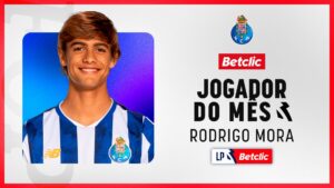 Rodrigo Mora foi eleito o Jogador do Mês da Liga Portugal Betclic em Abril. Com um total de 19,84% dos votos dos treinadores principais da competição, o jovem do FC Porto superou  Viktor Gyökeres (Sporting CP), que obteve a mesma percentagem de votos de Mora (19,84%,) mas registou 385 minutos de utilização, mais 44 do que o médio azul e branco. A completar o pódio surge Vangelis Pavlidis (SL Benfica), que recolheu 15,87% da preferência dos treinadores.