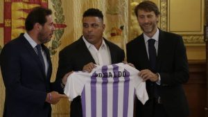 Ronaldo é o novo dono do Valladolid. O antigo internacional brasileiro comprou 51% das acções do emblema da La Liga e disse na apresentação, como novo accionista maioritário, que o objectivo passa “por consolidar a equipa na 1.ª divisão e seguir construindo sonhos”. Segundo relata a ‘Marca’, a operação custou cerca de 30 milhões de euros, sendo que para este desfecho terá contribuído o passivo do Valladolid, situado nos 25 milhões de euros.