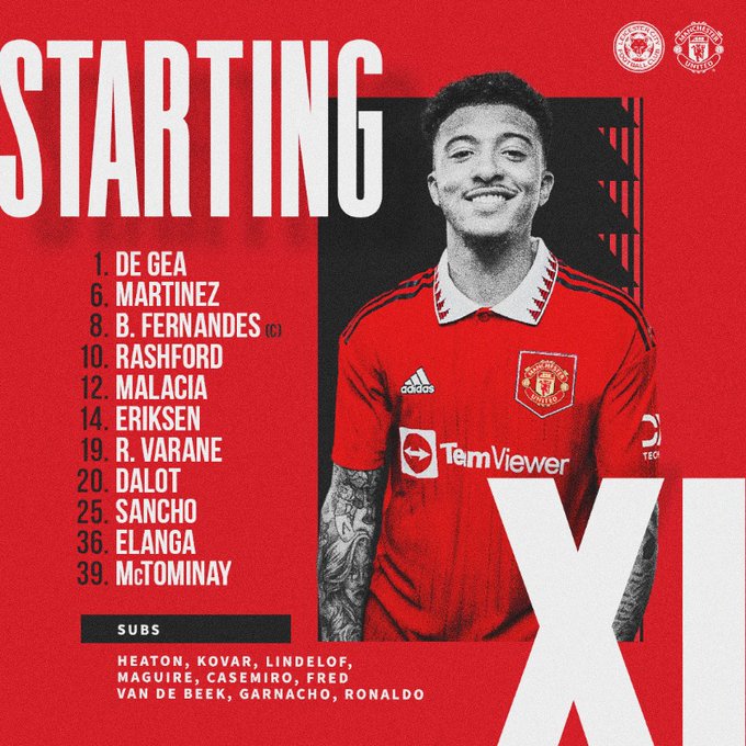 Cristiano Ronaldo vai começar no banco o duelo do Man Utd contra o Leicester, para a 5.ª jornada da Premier League. É a 3.ª vez seguida que o português é suplente, a 4.ª em 5 jogos. Também Casemiro e Maguire ficam no banco. Já Dalot e Bruno Fernandes estão firmes no XI de Ten Hag.