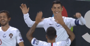 Lituânia 1-5 Portugal (Andriuškevičius 28′; Ronaldo 7′ g.p., 62′, 65′ e 76′ e William Carvalho 90’+2)