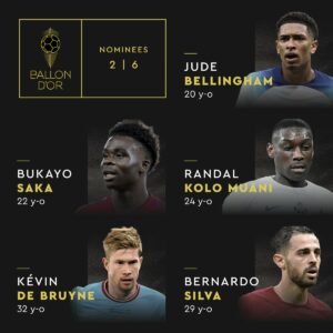 Para mim seria claramente o Rodri, mas como não foi titular na seleção espanhola no Mundial provavelmente não vai ser. Mas foi o melhor jogador do City na temporada, MVP da Champions, não haveria outro vencedor na minha opinião. Pelo marketing também, diria que ou ganha Messi ou ganha o Haaland.