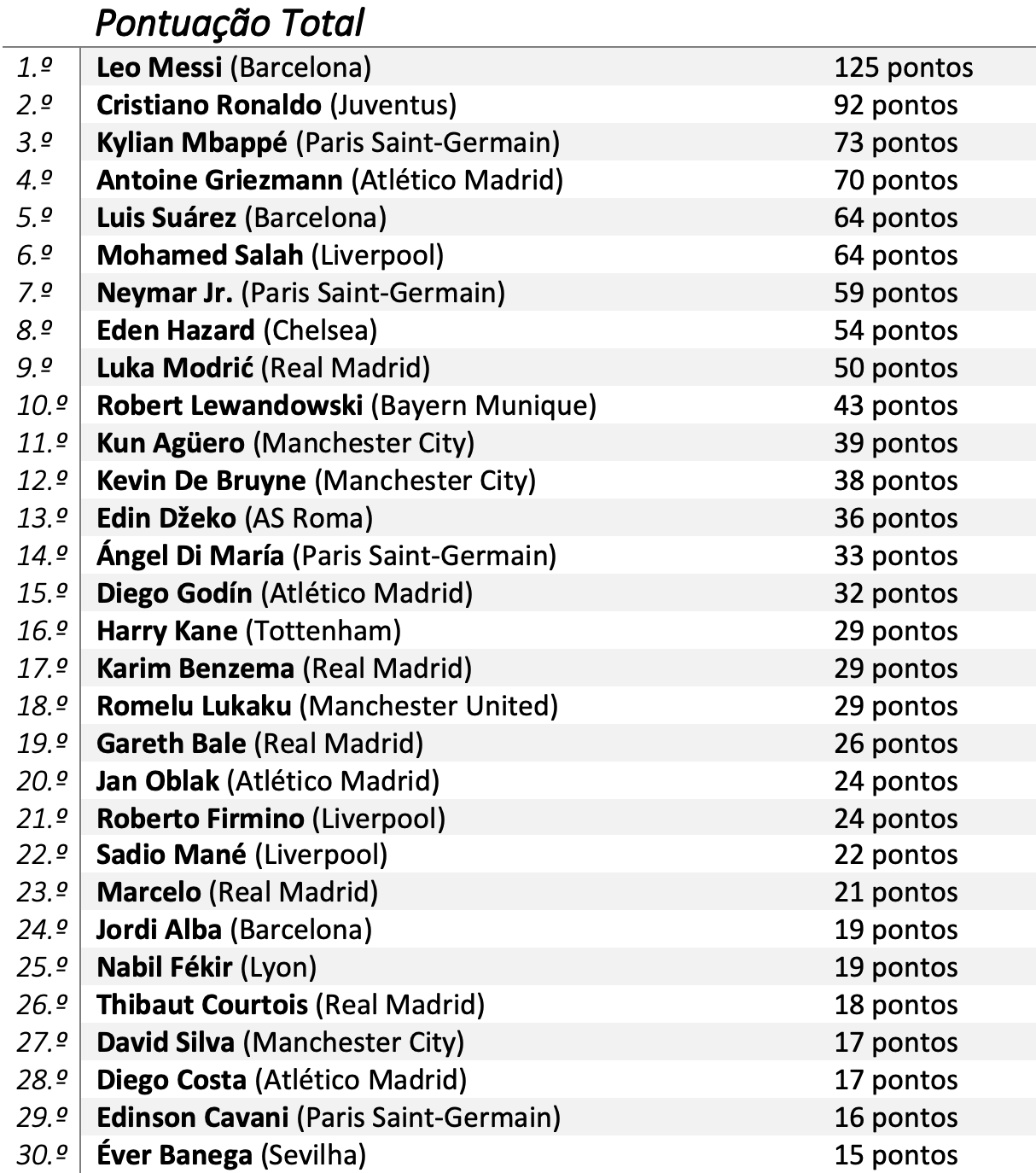 o VM tem de repensar o algoritmo deste exercício para 2019. Uma lista dos 30 melhores jogadores de 2018 com apenas 1 central (Godín), é escasso e injusto.
