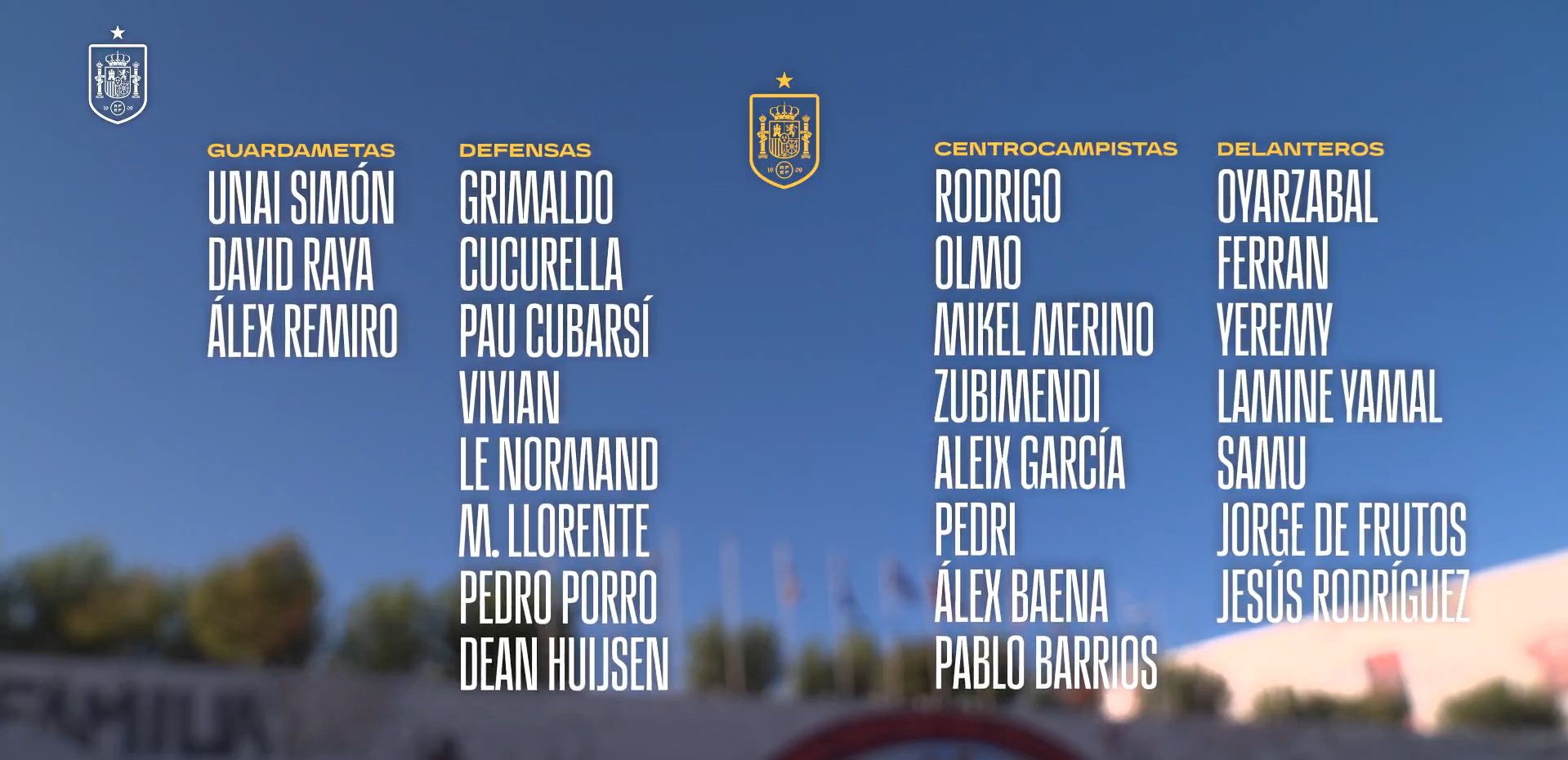 Raya, Porro, Huijsen, Vivian, Cucurella, Zubimendi, Pedri, Merino, Yamal, Olmo, Ferran