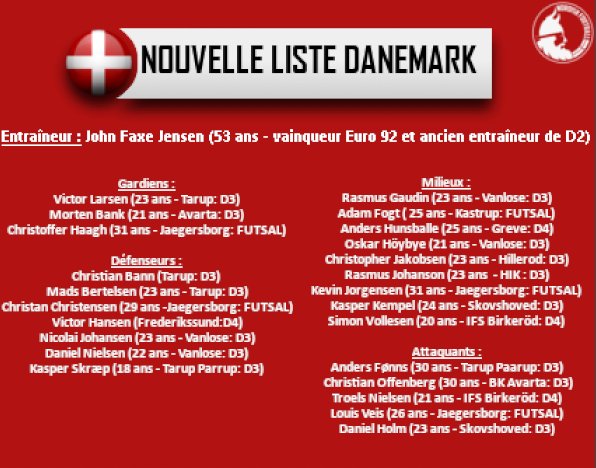 Insólito! A selecção dinamarquesa irá alinhar com elementos da 3.ª e 4.ª divisões do país e atletas de futsal no encontro particular frente à Eslováquia, marcado para amanhã, e no duelo contra o País de Gales, na jornada inaugural da Liga das Nações. Na base desta decisão está um diferendo entre os jogadores profissionais e a Federação devido a receitas publicitárias e direitos de imagem, o que levou os atletas da selecção, liderados por Eriksen, a tomarem a radical posição de recusar ir a jogo. O selecionador, Age Hareide, também não orientará esta equipa improvisada (que será dirigida por John Jensen, campeão da Europa em 1992), a qual conta com 15 jogadores da 3.ª divisão, 4 elementos da 4.ª divisão e 5 jogadores de futsal. Se a Federação não tivesse conseguido reunir estes atletas, teria falta de comparência nos dois jogos e corria o sério risco de sofrer penalizações, nomeadamente a exclusão por dois ou quatro anos das competições internacionais.
