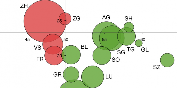 Outro ponto importante é que esta lei so foi aceitada a 50.3 % o que demostra bem que que este pais esta divisido em 2. De um lado temos a suiça alemanica ( que fala françes) que tem o maior numero de estranjeiros e que votaram contra esta lei e do outro lado temos a Suiça alema que tem um numero de immigrantes fraco e que votaram todos para que esta lei seja aprovada. Relaçao que como o vemos é muito interesante porque os alemas demostram um pouco o medo do desconhecido..