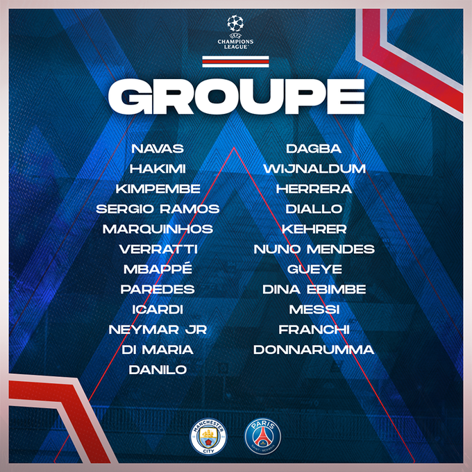 Sergio Ramos integra a lista de convocados do PSG para o duelo com o City, referente à 5.ª jornada da Champions. É a primeira vez que o ex-central do Real está na convocatória dos Parisienses. Recorde-se que Ramos não joga desde Maio e só recentemente começou a treinar a 100% no PSG. Os portugueses Nuno Mendes e Danilo também estão na lista.