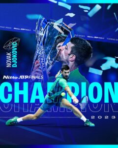 Djokovic conquistou as ATP Finals pela 7.ª vez na carreira, tornando-se recordista absoluto de títulos no torneio (ultrapassou Federer). O sérvio bateu Janik Sinner na final, por 2-0 com parciais de 6-3 e 6-3, vingando a derrota com o italiano na fase de grupos. Como particularidade, fica o fato de Sinner ter tido a eliminação de Djokovic nas mãos, mas venceu Rune quando uma derrota apurava ambos, e agora acaba por cair às mãos de Nole.