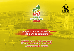 O Mundial de Futebol Amador – “Socca World Cup 2018” vai decorrer em Lisboa, na Praça do Comércio, entre 23 a 29 de Setembro de 2018. Um espectacular estádio será erguido na principal praça da cidade, para receber as 32 melhores equipas de futebol 6 de todo o Mundo!