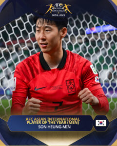 Son Heung-Min foi eleito pela quarta vez o futebolista internacional asiático do ano, batendo a concorrência do ex-FC Porto Mehdi Taremi, que ficou em 2.º. O avançado do Tottenham já tinha vencido este prémio, que é referente apenas a jogadores noutros continentes que não a Ásia, em 2015, 2017 e 2019, sucedendo agora a Kim Min-Jae, então no Nápoles. Relativamente ao melhor jogador a atuar na Ásia, a escolha recaiu em Akram Afif, do Al Sadd, que vence o prémio pela 2.ª vez e sucede a Al Dawsari.