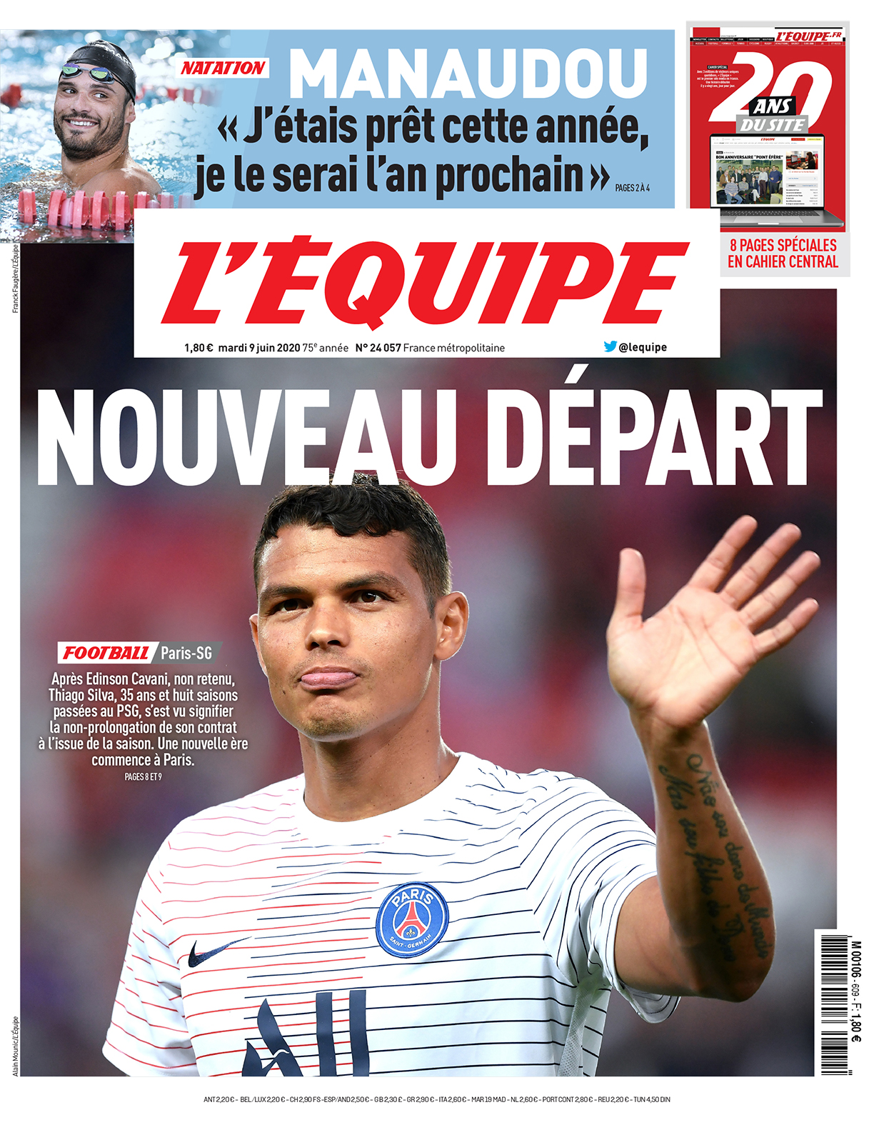 Fim da passagem de Thiago Silva pelo PSG. O central, internacional brasileiro, de 35 anos, está em final de contrato e, segundo o L’Equipe, já foi informado que o mesmo não será renovado. No entanto é provável que o seu vínculo seja estendido por mais dois meses, de maneira a contar para a fase final da Champions. Recorde-se que Thiago Silva chegou a Paris em 2012 proveniente do AC Milan, num negócio de 42 milhões de euros, sendo que já venceu 23 títulos pelos parisienses.