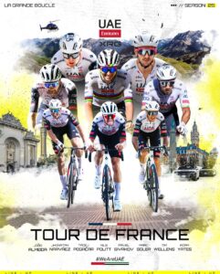 A UAE oficializou a lista de 8 ciclistas que estarão no Tour. Com destaque claro para João Almeida e Pogacar, há ainda as presenças de Adam Yates, Sivakov, Wellens, Pollitt, Marc Soler e Nárvaez, que fará a estreia no Tour e é a única alteração em relação a 2024, por troca com Ayuso.