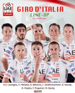 Rui Oliveira integra a equipa da UAE Emirates para a Volta a Itália. O ciclista português deve ajudar Sebastian Molano nas chegadas ao sprint, no entanto o grande objetivo é levar Tadej Pogacar à vitória final.  Mikkel Bjerg, Vegard Stake Laengen, Felix Grossschartner, Rafal Majka e Domen Novak completam o elenco.