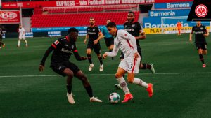 Temporada assombrosa do português, que igualou os 25 golos também já apontados por Erling Haaland. Ainda assim, o Eintracht teve um desafio muito complicado e sai da Bay Arena com menos margem para o B. Dortmund e o próprio Leverkusen, que teve mais bola, dominiou de princípio ao fim e criou várias oportunidades de golo. Trapp, que vinha realizando uma boa exibição, ficou mal na fotografia no 1-0, ao passo que a dupla Bailey (golo e assistência) e Diaby (assistência) continua em destaque. Já Alario saiu do banco para apontar um golaço.