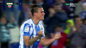 .@LaLiga | @CDLeganes 1-0 @realmadrid | 45’@CDLeganes na frente! Jonathan Silva a fazer o que os merengues não conseguem. #JogaLaLiga #ForTheFans pic.twitter.com/1atD0paNr7