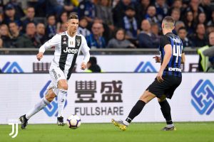 Inter e Juventus empataram a uma bola no jogo grande da 34.ª jornada da Série A. Radja Nainggolan adiantou a equipa da casa com um remate espectacular aos 7 minutos, mas no 2.º tempo o inevitável Ronaldo evitou a derrota da Vecchia Signora. Cancelo fez os 90 minutos pela Vecchia Signora, já João Mário foi lançado aos 79 minutos por Spalletti.