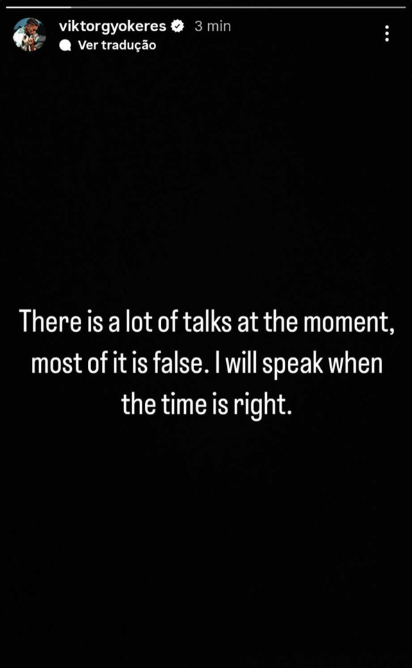 Viktor Gyokeres reagiu à recente polémica em torno da sua possível saída do Sporting, deixando uma mensagem enigmática nas redes sociais com promessa de esclarecimentos no futuro: “Existem muita conversas no momento, a maioria delas falsas. Falarei quando chegar a altura certa”.