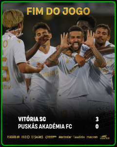 O Vitória SC bateu o Puskás Akadémia por 3-0 e ganhou uma vantagem confortável na 1.ª mão da 2.ª pré-eliminatória da Conference League. Com Moreno ao leme, os vimaranenses abriram o ativo logo aos 4 minutos, por Rúben Lameiras, tendo Tiago Silva ampliado com um golaço de fora da área, aos 39′. No 2.º tempo, Anderson foi lançado e marcou ao primeiro toque, fixando o 3-0 final aos 65′. A 2.ª mão será disputada na próxima quinta-feira.