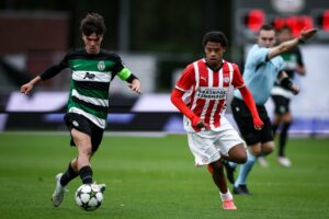 O Sporting conseguiu a 1.ª vitória na Youth League ao bater, fora, o PSV, por 2-0. Afonso Moreira marcou um golaço no 1.º tempo, tendo Eduardo Felicíssimo ampliado de cabeça logo depois do intervalo, num encontro em que Tiago Teixeira alinhou com: Miguel Gouveia, Daniel Costa, Afonso Lee, Lucas Taibo, Rayhan Momade, Eduardo Felicíssimo, Henrique Arreiol, João Simões, Manuel Mendonça, Afonso Moreira e Gabriel Silva.